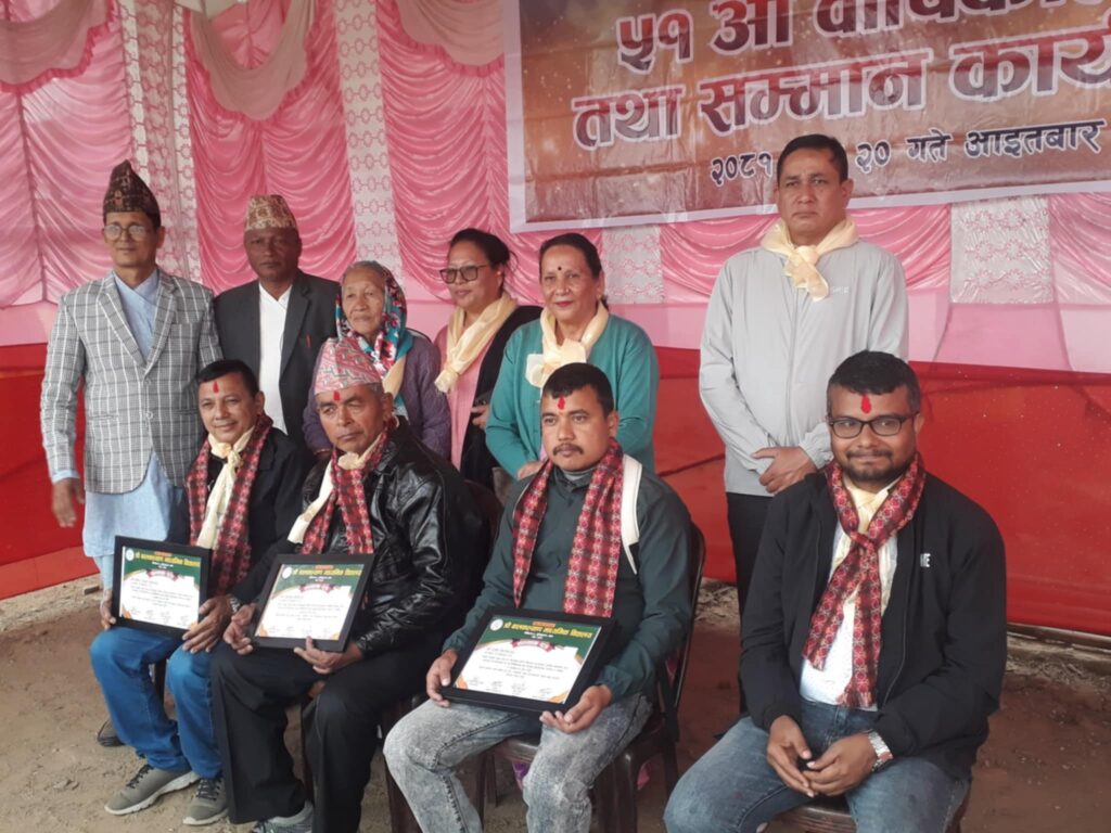विद्यालयले सम्मानित ब्यक्तित्वहरुलाई प्रमु्ख अतिथि तथा अतिथिहरुले दोेसल्ला ओढाएर सम्मान पत्रद्धारा सम्मान गरिएको थियो ।