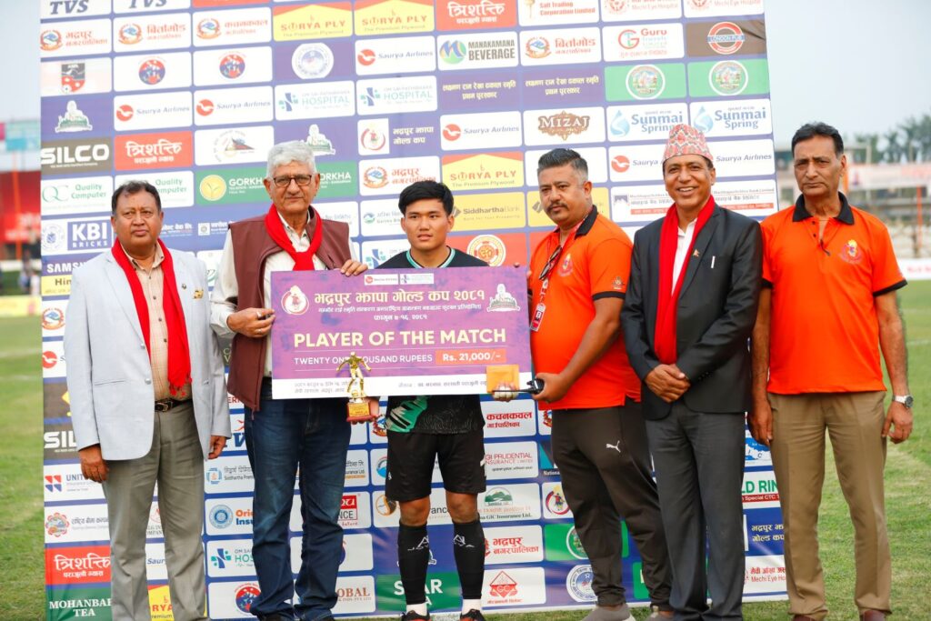खेलको प्लेयर अफ द म्याच झापाका गोलकिपर लिम्बू भए । उनले नगद २१ हजारसहित ट्रफी पाए । शुक्रबारको पहिलो क्वार्टर फाइनल खेल आयोजक भद्रपुर ब्लेजर्स र नेपाल पुलिस क्लबबीच हुनेछ ।