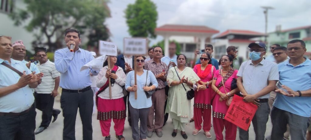 झापा, १६ वैशाख । आन्दोलनरत मेचीनगरका शिक्षकले आज नगरपालिका परिसरमा विरोध सभा गरेका छन् । सरकारले आफ्ना जायज मागलाई २८ औं दिन सम्म्पनि सम्बोधन नगरेपछि आक्रोशित बनेका शिक्षकहरुले अव उप्रान्त राजनीतिक दलको आवद्धता परित्याग गर्ने उद्घोष समेत गरेका छन् ।