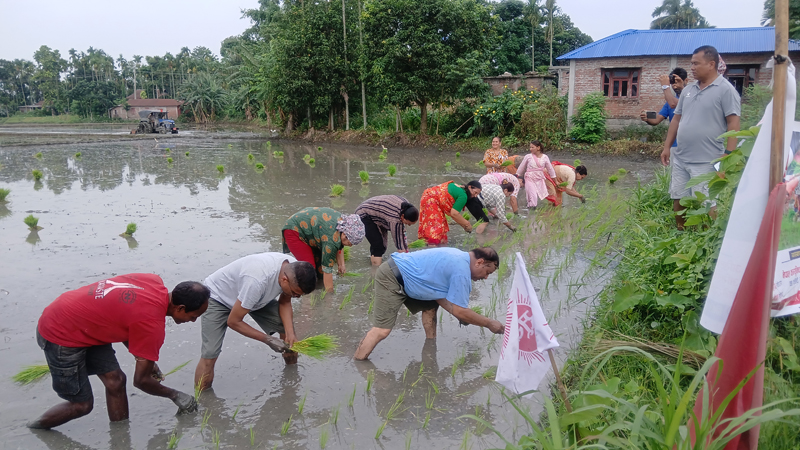 आइतबार मेचीनगर–७, जोरसिमल स्थित नरपति काफ्लेको खेतमा एमाले मेचीनगरले धानको विउँ रोपेर दिवस मनाएको हो ।