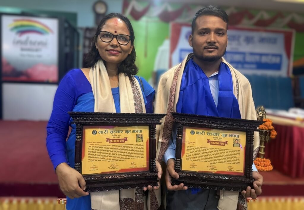 नारी सञ्चार गृहद्वारा पत्रकार भण्डारी र घिमिरे पुरस्कृत