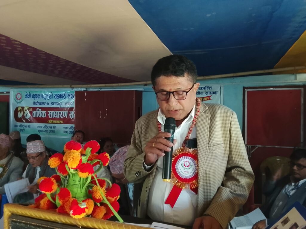 ‘समृद्ध समाज निर्मार्णको भरपर्दाै माध्यम सहकारी हो’, उनले भने, सहकारी आर्थिक मेरुदण्डको मुख्य आधार हो । सहकारीकै माध्यमबाट आर्थिक समृद्धि हासिल हुन्छ । त्यसकोलागि सहकारी सञ्चालन गर्न जान्नु पर्छ । उनले हाल देशभर ३३ हजार बढी सहकारी रहेको र केही सहकारीका सञ्चालक समिति र कर्मचारीको लापरवाहीका कारण देशभरका सहकारी यतिखेर बदनाम हुँदै गएको दुखेसो समेत पोखे । उनले मेचीनगरका एक दुईवटा सहकारी बाहेक सबै सहकारी विधि र पद्धती अनुसार सञ्चालन भइरहेको दावी समेत गरे । पछिल्लो समय सहकारीबाट चलाएको ऋण तिर्नु पर्दैन भनेर केही व्यक्तिहरुले चलाएको अफवाका पछि नलाग्न आग्रह गर्दै उनले भने, ‘एउटा सदस्यहरुले दुःख गरेर बचत गरेको पैसा अर्काे सदस्यले गर्जाे टार्न ऋण लिएको हुन्छ । अनि कसरी त्यो ऋण छुट हुन्छ ? के बचत गर्ने सदस्यले आफ्नो पैसा अनुदानमा दिन सक्छ ? उनले प्रश्न गरे ।