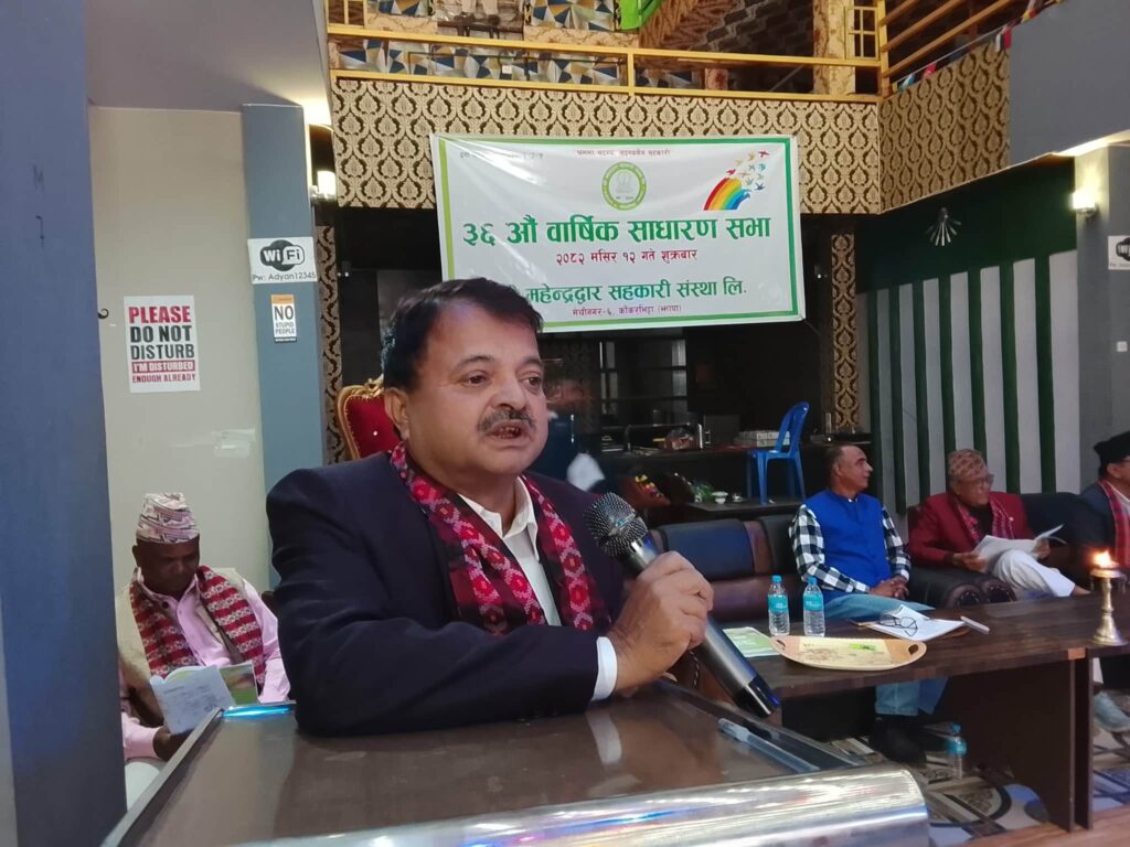 सहकारी संस्थाका अध्यक्ष राजकुमार दाहालको सभापतित्व तथा राष्ट्रिय सहकारी संघ झापाका वरिष्ठ उपाध्यक्ष दुर्गाप्रसाद सापकोटाको प्रमुख आतिथ्य रहेको कार्यक्रममा प्रमुख अतिथि सापकोटाले कुनै बेला देशकै उत्कृष्ट बनेको महेन्द्रद्वार सहकारी आज थला परेको अवस्थामा रहेको भन्दै यसलाई उठाउन सञ्चालक समिति र सदस्यहरुको उत्तीकै महत्वपूर्ण भूमिका हुने बताए ।