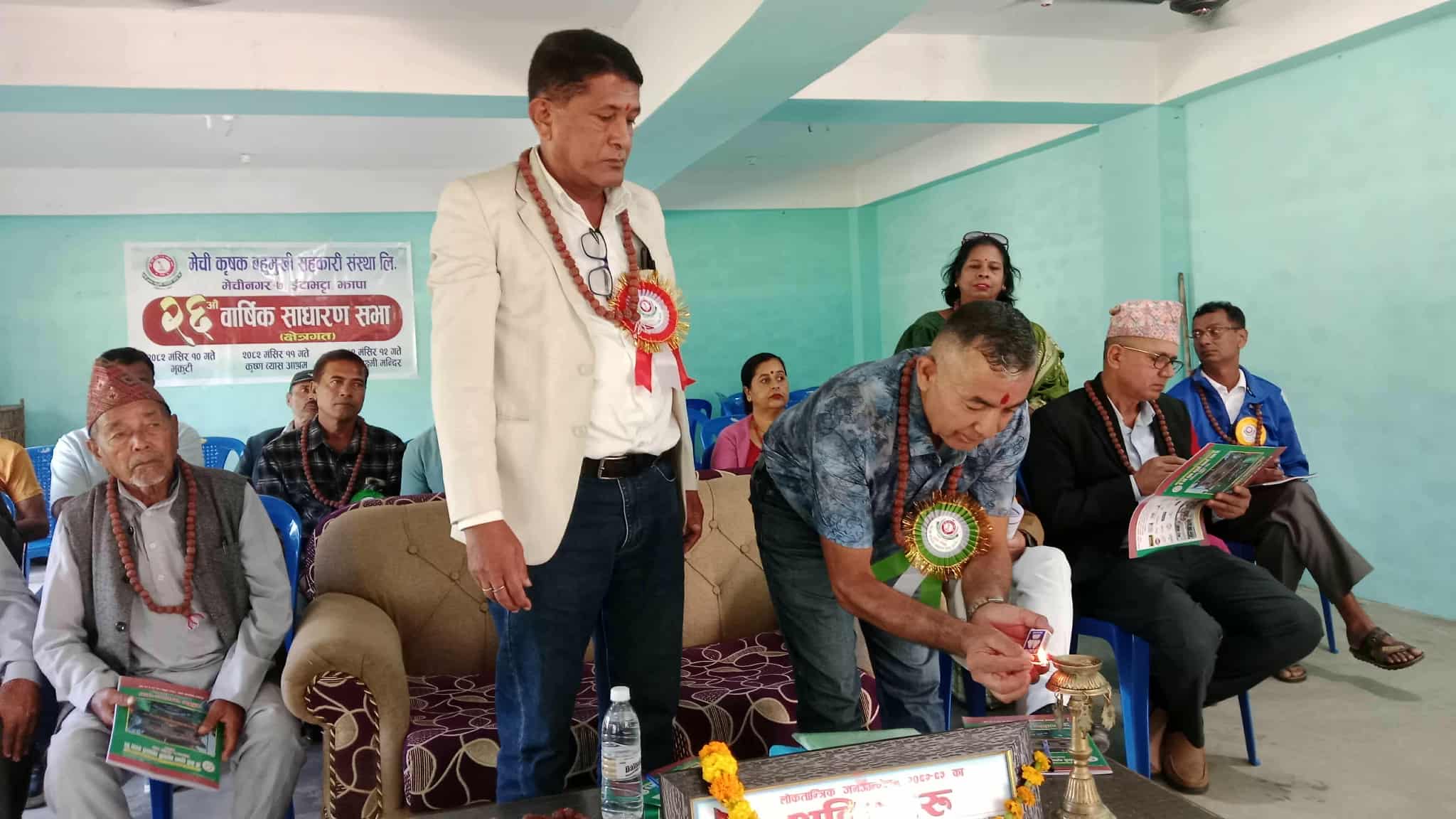 ‘यो मेचीनगर भित्र रहेका सहकारीहरुको मात्री संस्था हो’, उनले भने, आज आमा विरामी हुनुहुन्छ । कहिले आइसीयुमा, त कहिले भेन्टीलेटरमा राखेर उपचार गर्नु पर्याे । अब भने यतिखेर केही सुधार भएर नर्मल बेडमा सारिसकेको अवस्था छ । सबैले मिलेर राम्रो स्याहार सुशाार गरौं पहिलेकै अवस्थामा फर्काउन सकिन्छ । उनले सञ्चालक समितिलाई हौसला दिँदै चुनौति र अवसर दुबै सञ्चालक समितिलाई आएको बताए ।