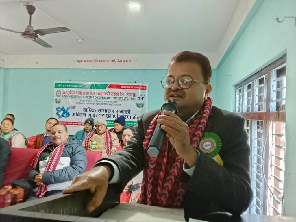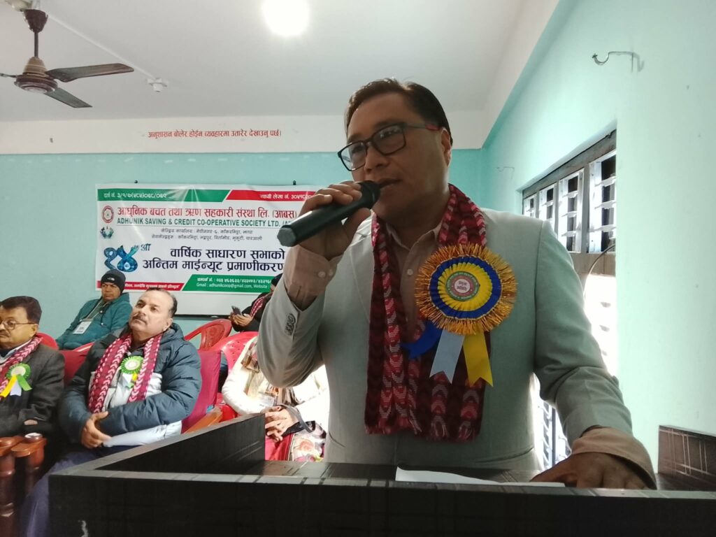 सहकारी संस्थाका अध्यक्ष कमल थापाको सभापतित्वमा आयोजित अन्तिम माइन्यूट प्रमाणिकरण सभामा अध्यक्षले वार्षिक प्रतिवेदन प्रस्तुत गर्दै सहकारी नाफामुलक संस्था नभएर सेवामुलक संस्था भएको बताए ।