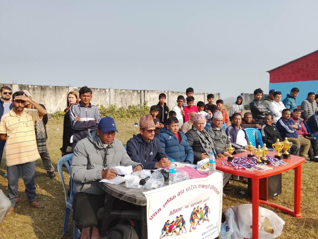 खेल संयोजक दीपक सुवेदीको सभापतित्वमा सम्पन्न कार्यक्रममा नेपाल रेडक्रश सोसाइटी झापाका अध्यक्ष लोकराज ढकाल, नेपालकी अन्तर्राष्ट्रिय कबड्डी रेफ्री रेश्मा कुमारी राजवंशी, बाल सुबोधिनी माविका प्रधानाध्यापक विश्व थापा, विहानी बचत तथा ऋण सहकारी संस्थाका अध्यक्ष बालकुमार रिजाल, आपसी सहकारी संस्थाका अध्यक्ष सरदकुमार सिवाकोटी, सानाकिसान सहकारी संस्था लि.का अध्यक्ष डिल्लीराम भण्डारी, १४ नम्बर खेलकुद विकास समितिका अध्यक्ष मिनप्रसाद सुुवेदी, नेकपा एमाले वडा पार्टी अध्यक्ष मनकुमार राउत, समाजसेवी प्रेम कार्की, सुरेश बुढाथोकी लगायतको आतिथ्यता रहेको थियो ।