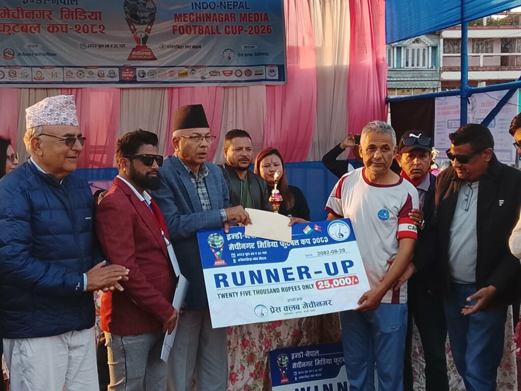 त्यस्तै उत्कृष्ट फर्वार्ड आयोजक प्रेस क्लब मेचीनगरका युवराज आचार्य, उत्कृष्ट डिफेन्डर भद्रपुरका राजु पाठक र उत्कृष्ट गोल किपर भद्रपुरकै सुजक राउत घोषित भए ।
