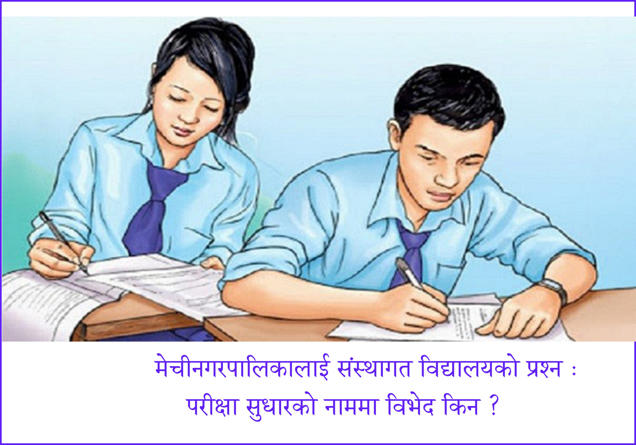 हालै मेचीनगर नगरपालिकाको शिक्षा शाखाले आधारभूत तह कक्षा ८ को वार्षिक परीक्षा केन्द्रीकृत रूपमा सञ्चालन गर्ने प्रस्ताव अघि सारेको छ। उद्देश्यका हिसाबले यो प्रस्ताव सकारात्मक देखिए पनि यसको कार्यान्वयन ढाँचा ले गम्भीर प्रश्नहरू जन्माएको छ। विशेषतः मेचीनगरस्थित संस्थागत विद्यालयहरू—एनप्याब्सन र प्याब्सन—ले नगर शिक्षा शाखाद्वारा प्रस्तावित Home Center कसैलाई दिने, कसैलाई नदिने व्यवस्थाप्रति कडा आपत्ति जनाउँदै आएका छन्। यो आपत्ति कुनै स्वार्थबाट होइन, समानता, न्याय र लोकतान्त्रिक मूल्यको रक्षाबाट प्रेरित हो। Home Center कसैलाई हुने, कसैलाई नहुने व्यवस्था न त समानताको सिद्धान्तसँग मेल खान्छ, न त लोकतान्त्रिक अभ्याससँग। यस्तो विभेदपूर्ण संरचनाले परीक्षा सुधारभन्दा बढी अविश्वास र असन्तोष जन्माउने खतरा बोकेको छ।