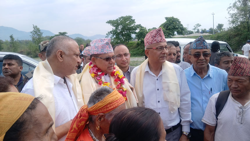 सडक अवलोकन गर्दै मन्त्री दाहालले भने, ‘आगामी बजेटमा धुलाबारी–स्याङ्लेटार सडक पूरा गर्छौं ’