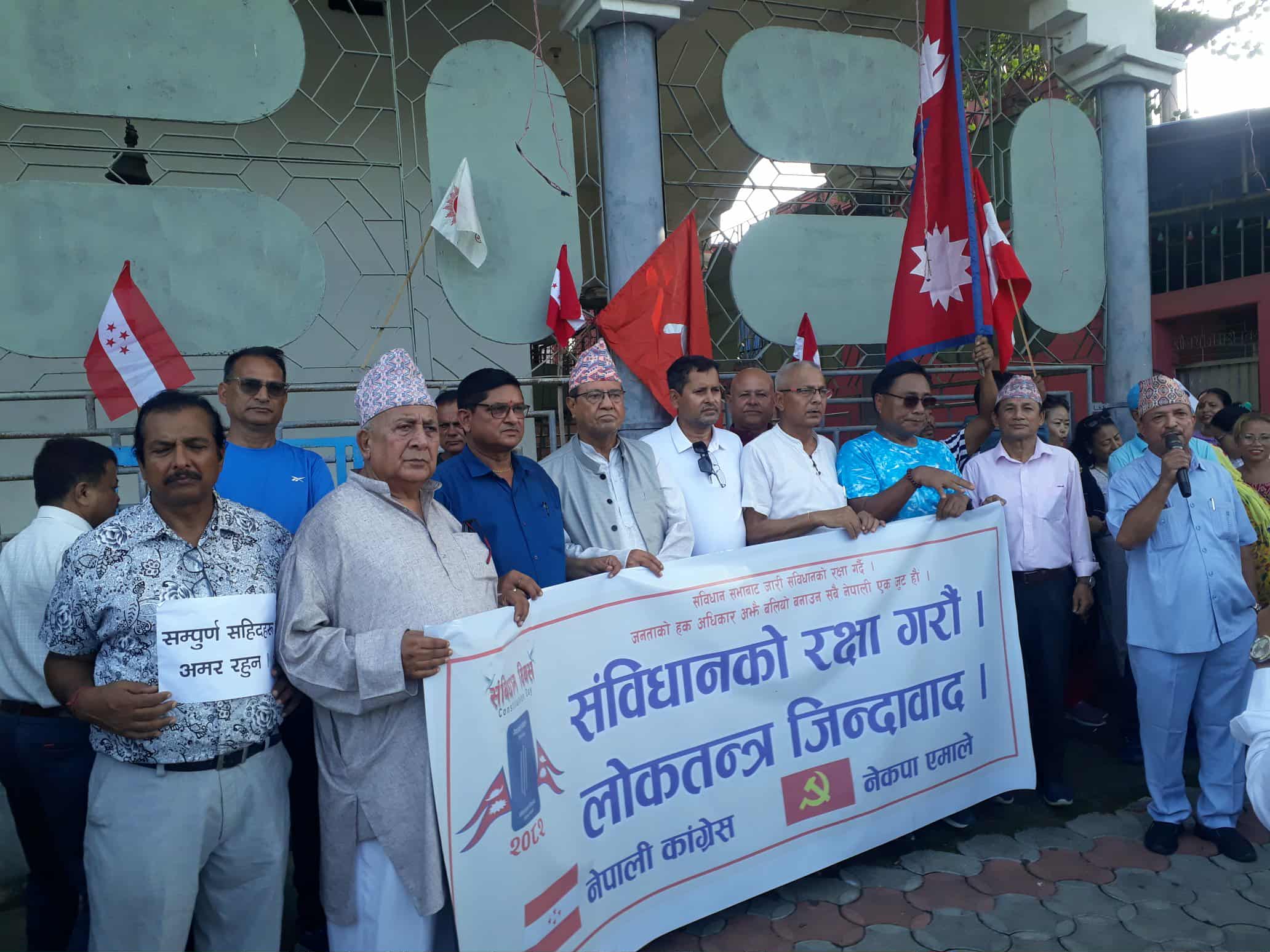 संविधान दिवसमा काँकरभिट्टामा काँग्रेस र एमालेको मौन जुलुस